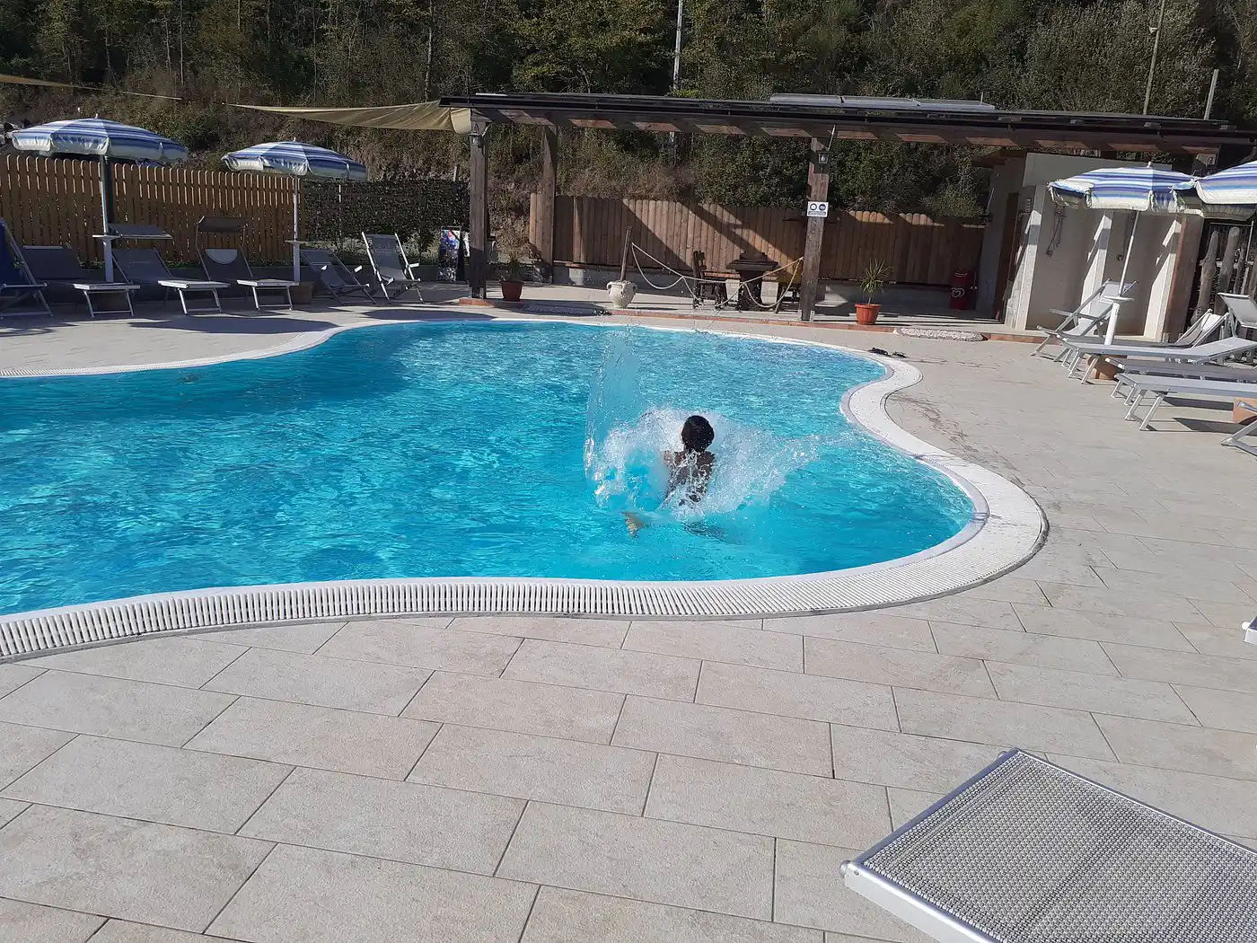 La piscina convenzionata con il Palazzo Iaquinta è progettata per soddisfare le esigenze di tutti i nostri ospiti, dalle famiglie con bambini alle coppie in cerca di quiete. Con profondità modulate (da 50 cm a 1,65 m), garantisce sicurezza e divertimento per i più piccoli e spazi ideali per il relax degli adulti. L'ampia area solarium, dotata di numerosi ombrelloni, lettini e sdraio, offre tutto il necessario per prendere il sole in totale comfort. Inoltre, la presenza di un ristorante dedicato e un bar a bordo piscina ti permette di non preoccuparti di nulla: potrai gustare prelibatezze locali o sorseggiare una bibita fresca senza mai allontanarti dal tuo angolo di paradio. Ricorda, l'accesso a questa fantastica piscina è completamente gratuito per gli ospiti del Palazzo Iaquinta, un valore aggiunto da non perdere per la tua prossima vacanza nel cuore del Cilento.